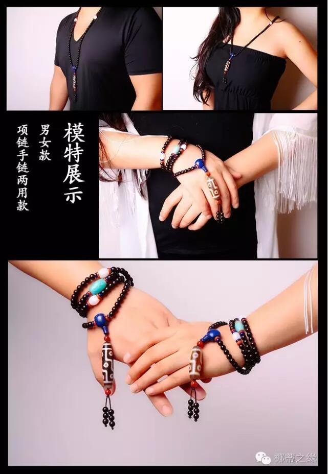 椰蒂串珠在文玩圈内素有“百变串珠”的称号,因为用椰蒂与任何一种带有颜色的珠子或者配饰混搭在一起都会显得无比的典雅,并且具有十足的西域特色和味道。